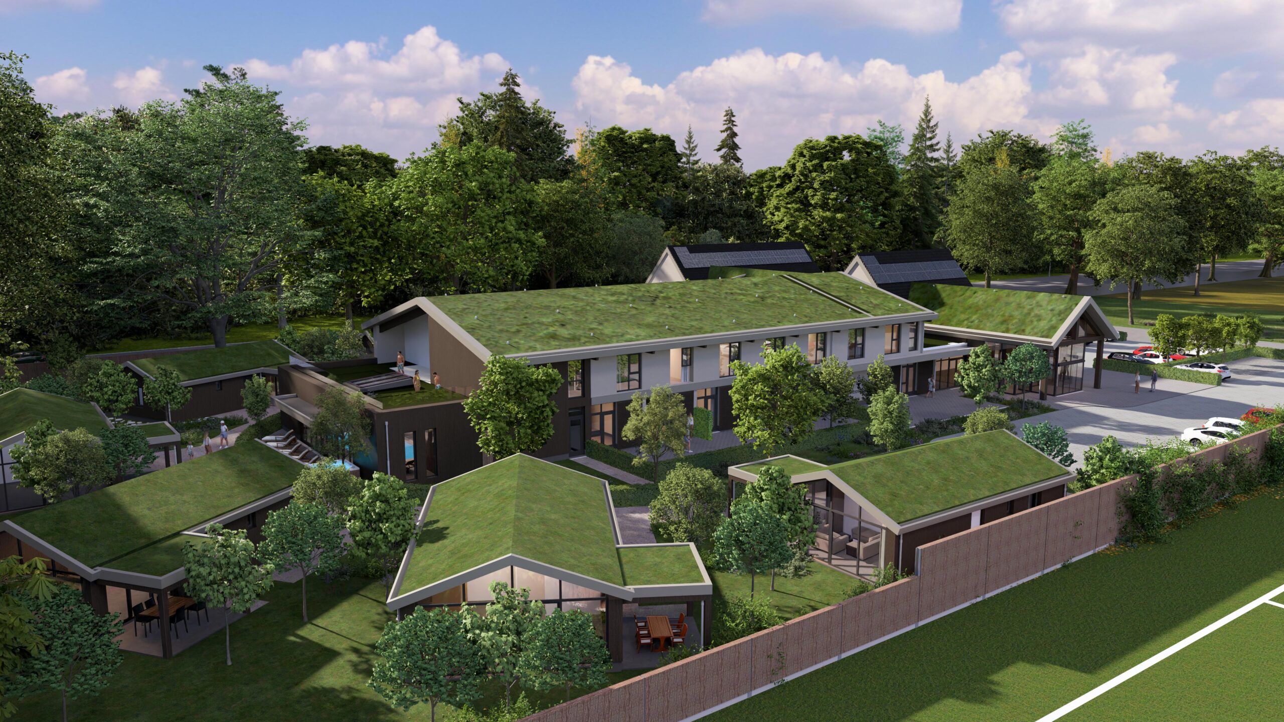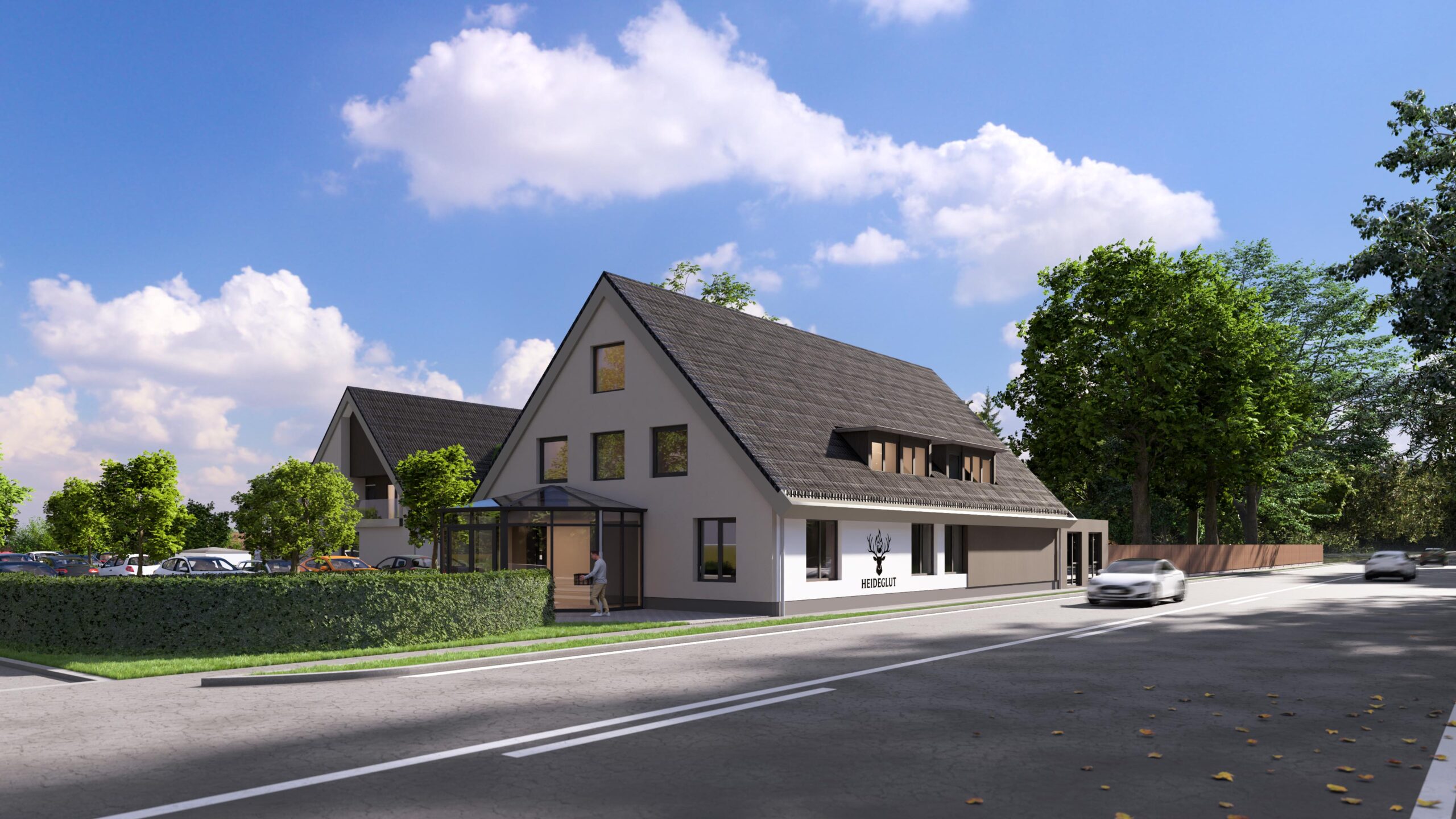 Vernieuwbouw van een bestaande horeca gelegenheid i.c.m. nieuwbouw hotel, wellness en recreatie woningen in Duitsland.